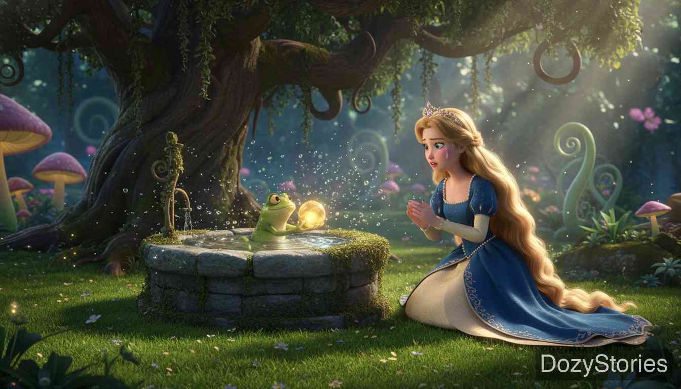 小公主在古老的椴树下玩金球,金球不慎掉入井中,一只青蛙答应帮她捞球,条件是成为她的伙伴。